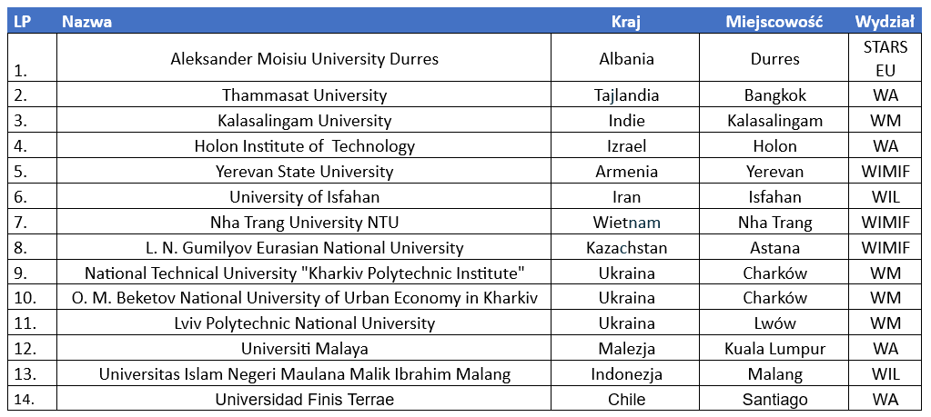 W latach 2023-2027 uczelnia realizuje projekt w ramach KA-171 programu Erasmus+ z następującymi uczelniami: